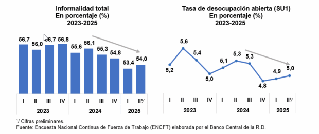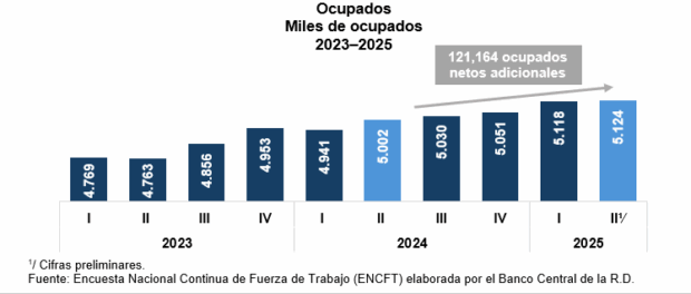 SANTO DOMINGO . El Banco Central de República Dominicana informó de resultados positivos registrados entre abril y junio de 2025 el mercado laboral del país en  comparación con el mismo período de 2024, durante el cual: