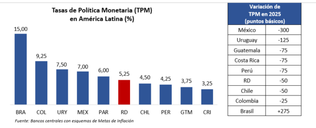 En América Latina, el crecimiento promedio ha sido modesto, pero la mayoría de los bancos centrales redujeron sus tasas de interés para apoyar la economía. República Dominicana, a diferencia de muchos países, terminó el año con un aumento neto de su tasa, aunque había hecho recortes recientemente.
