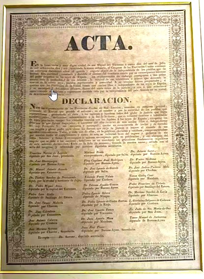 “Nos los representantes de las Provincias Unidas en Sud-América, reunidos en congreso general, invocando al Eterno que preside el universo, en nombre y por la autoridad de los pueblos que representamos, protestando al cielo, a las naciones y hombres todos del globo la justicia que regla nuestros votos”.