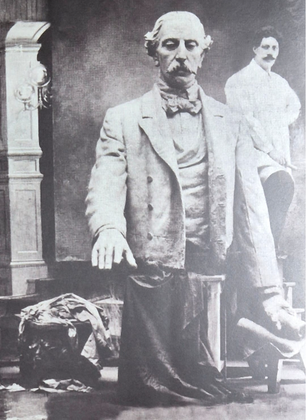 Abelardo Rodríguez Urdaneta posa junto al proyecto de estatua de Juan Pablo Duarte. Fuente: Historia de la fotografía dominicana (1851–1951), Jeanette Miller. Colección Centenario de Grupo León Jimenes, 2010.