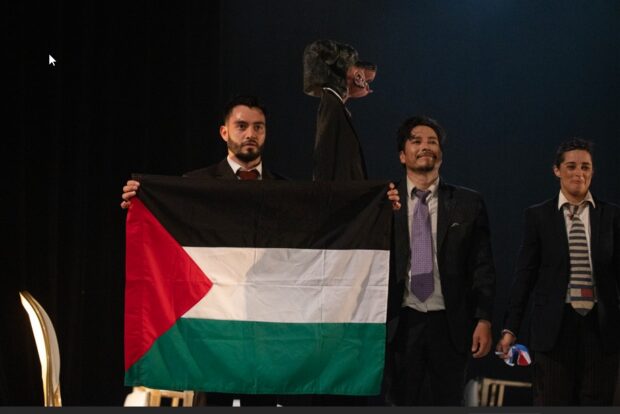 Los ticos fueron sarcásticos al denunciar esos discursos en los medios y redes, y sus intervenciones públicas, el endiosamiento del militarismo, para concluir con el levantamiento de la bandera palestina, justo en los actuales momentos de la historia.