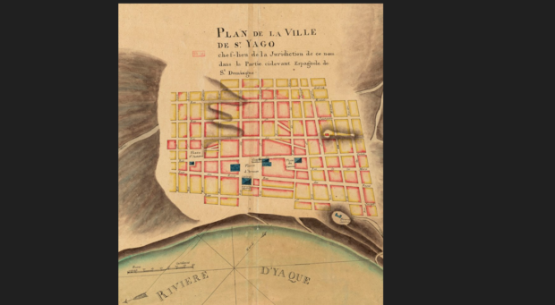 “En efecto, de él se concluye que, todavía en el siglo XVIII, el convento de Nuestra Señora de la Merced constituía el límite este de la ciudad, a partir del cual se extendía una sabana en la que resaltaban, como accidentes geográficos destacados, un cerrillo, una laguna, el llano de la Cuesta de las Piedras y un camino hacia el río —acaso la misma cuesta, la hoy calle Sánchez—, que culminaba en Las Tres Cruces —donde en algún momento hubo un asentamiento de esclavos de la colonia francesa—, que miraban al cerro del Horno, donde en el siglo XX se construyó el hoy Monumento a los Héroes de la Restauración”, apuntó a la concurrencia a la charla histórica.
