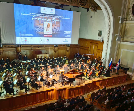 Durante el concierto, el maestro dominicano Ramón Orlando interpretó como solista el piano, frente a una orquesta integrada por setenta y cinco músicos del Conservatorio Tchaikovsky, con la dirección artística del maestro ruso Vyacheslav Valeev y la dirección de programa del maestro ruso Ilya Markeev, reforzados por seis músicos dominicanos.
