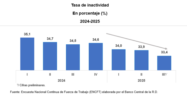 Finalmente, más personas participaron en el mercado de trabajo y menos permanecieron inactivas. La tasa global de participación alcanzó un máximo histórico de 66.6 %, mientras que la inactividad disminuyó, lo que indica una mayor disposición de la población a trabajar.
