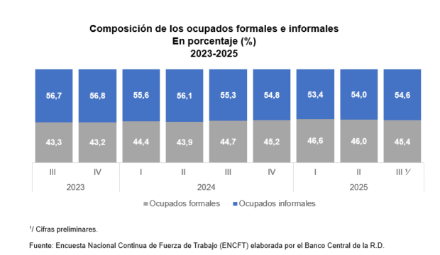 El Banco Central ha emitido una interpretación sobre los resultados más recientes de la Encuesta Nacional Continua de Fuerza de Trabajo (ENCFT), evidencia que el mercado laboral continúa exhibiendo gran resiliencia, con niveles de ocupación en su nivel máximo y tasas de desocupación e informalidad que se mantienen en torno a los mínimos históricos de la serie de la referida encuesta.