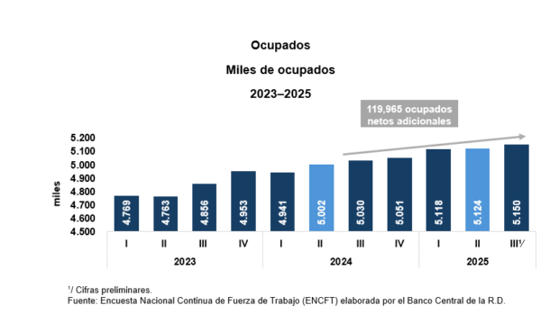 Dice el Banco Central: El empleo en el país siguió creciendo durante el período julio-septiembre de 2025.