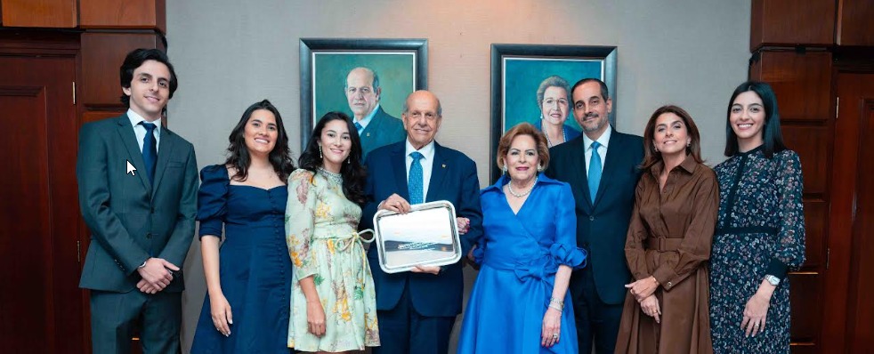 El homenaje incluyó la entrega de una placa conmemorativa y el develamiento de su retrato, obra del destacado artista Miguel Núñez, el cual forma parte de la galería de consejeros eméritos del Grupo Popular.