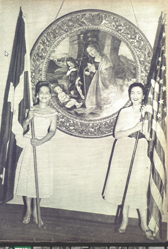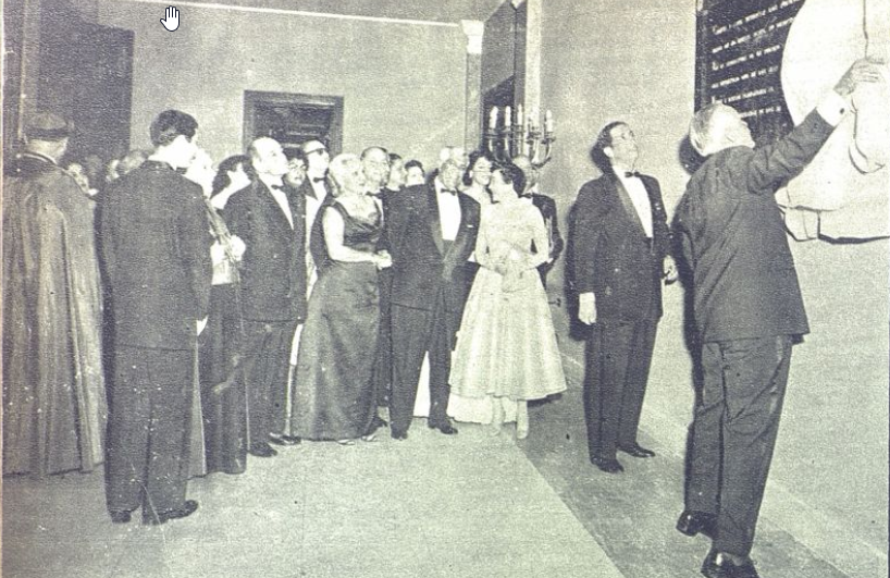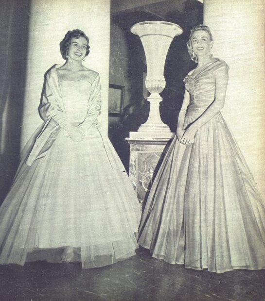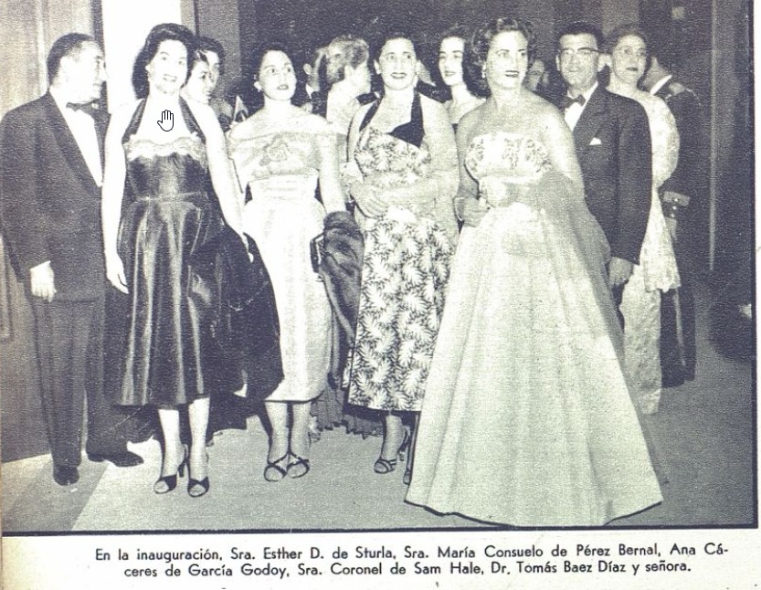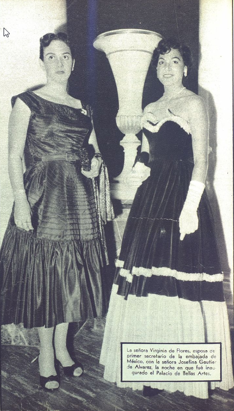Dos damas de la alta sociedad dominicana en el acto de inauguración del Palacio de Bellas Artes en el Salón La Cúpula. FOTO: Album de Oro (AGN)