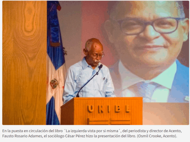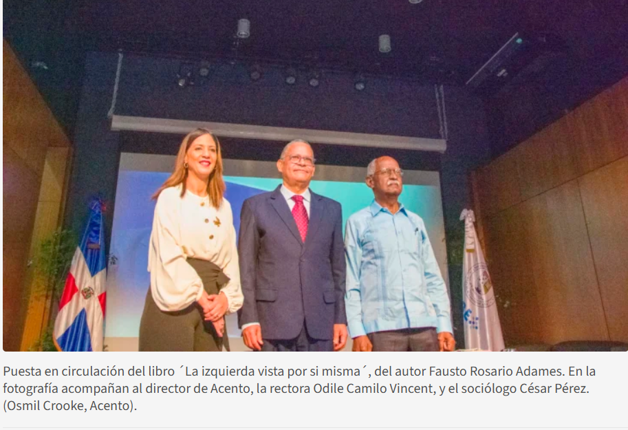 La abrumadora asistencia para acompañar a Fausto Rosario Adames en la presentación de su libro La izquierda vista por sí misma puede haber tenido varias razones: la cantidad de gente de izquierda y derecha mencionada en sus entrevistas; el total tan abrumador de personalidades entrevistadas en el programa ¿Y tú… qué dices?, difundido por la plataforma Acento TV; la calidad de testigos o participantes de hechos que pocas veces se han descrito desde la óptica interna; el interés social y político por un tema aireado desde una perspectiva tan auténtica; o el interés, curiosidad o morbo en torno a determinadas circunstancias enfocadas… ¿Quién sabe?