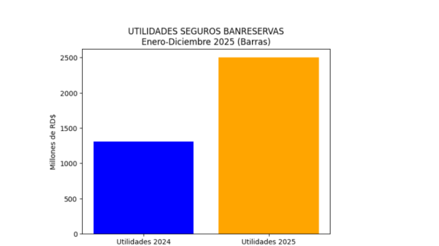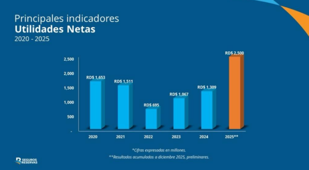Durante el período enero-diciembre del 2025, la aseguradora registró un incremento de 96% en sus utilidades netas al pasar de RD$1,309 millones a diciembre de 2024, a un preliminar de RD$2,500 millones para el período 2025.
